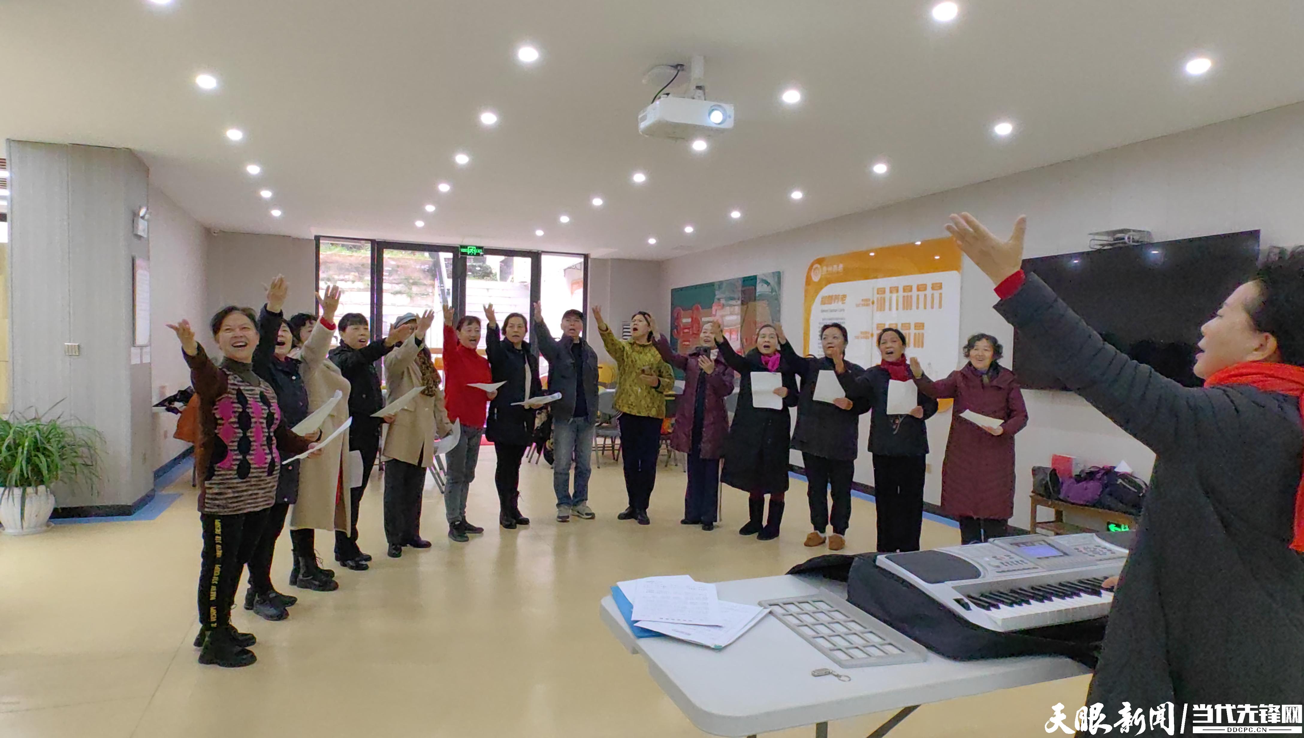 養(yǎng)老服務(wù)站里,老年人上聲樂課有老師教課。養(yǎng)老服務(wù)站供圖
