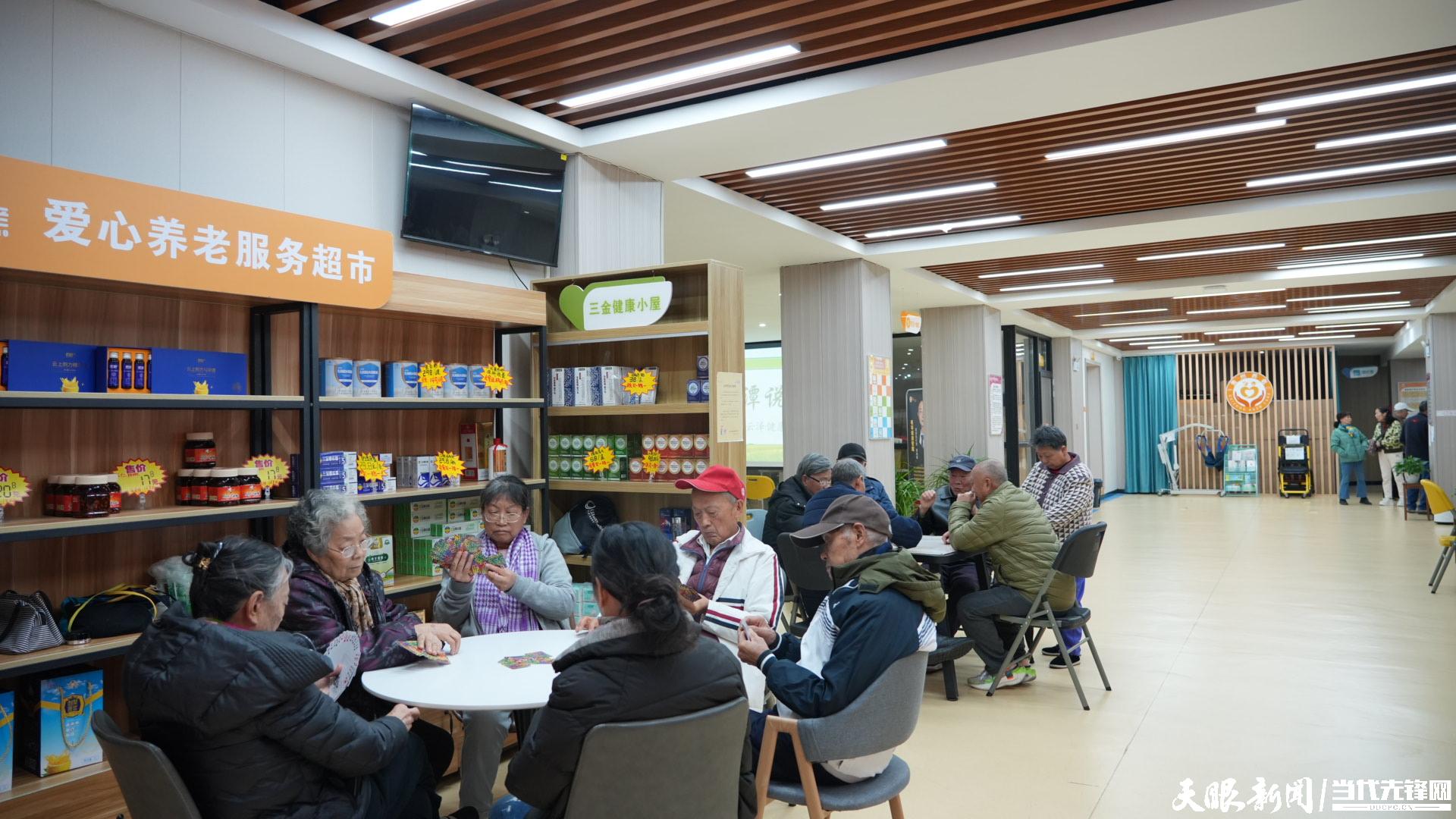 養(yǎng)老服務(wù)站里,老年人正在進(jìn)行娛樂活動(dòng)。
